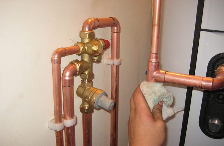 Conseil utile! Il est recommandé d'installer une tuyauterie en cuivre pour l'eau froide avec un revêtement en plastique. Vous devrez négliger les qualités esthétiques du revêtement en cuivre, mais le condensat ne s'écoulera pas de la surface du cuivre et ne gâchera pas le linoléum ou les meubles.