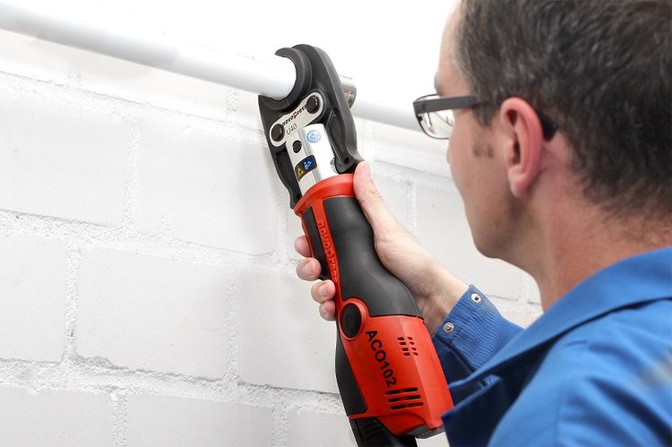 Une paire de clés est utilisée pour serrer les joints de compression, le manchon à sertir est assis à l'aide d'une pince spéciale. Le gabarit vérifie la qualité de la compression du raccord de presse, l'utilisation répétée de l'outil de serrage peut entraîner des fissures et des dommages à la structure du tuyau, ce qui réduira considérablement le temps de fonctionnement sans problème. Les mâchoires de presse sont utilisées pour se connecter avec une rondelle coulissante, et il est préférable d'utiliser un outil hydraulique.