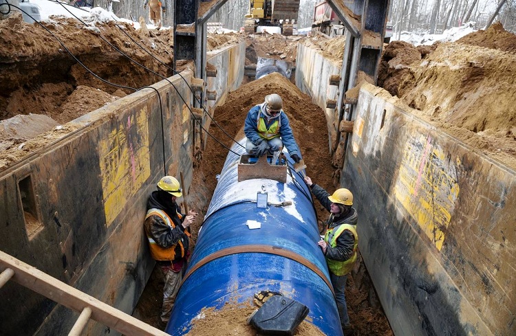 Des tuyaux avec des indicateurs à haute résistance sont utilisés pour la pose souterraine et le travail sous des sections de conduites d'eau à haute pression.