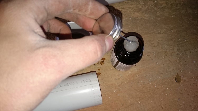 - Tout d'abord, il est nécessaire d'appliquer une certaine quantité de colle sur la surface intérieure du raccord de raccordement, ainsi que sur la surface extérieure du tuyau en CPVC.