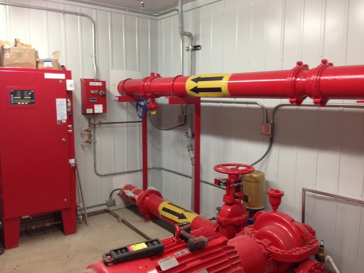 2. Il y a une station avec un point de contrôle du REG et une pompe à incendie, qui fournira une bonne pression à basse pression dans une source externe ou un approvisionnement en eau. La pompe et le point de contrôle doivent être situés en dessous:
