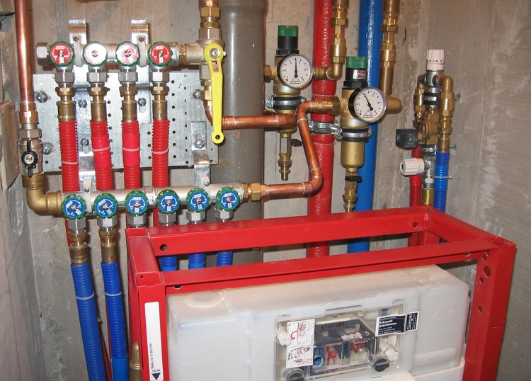 - Ensuite, le travail est effectué sur l'installation du collecteur et des robinets à tournant sphérique aux sorties.
