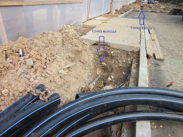 - perçant. Cette méthode peut être envisagée lors de la pose de tuyaux dont le diamètre ne dépasse pas 150 mm. De plus, son utilisation n'est possible que dans de petites zones. Pour poser des tuyaux de cette manière, il est nécessaire de creuser deux fosses, en passant par exemple des deux côtés de la piste. À l'aide d'un vérin hydraulique, un tuyau en acier est poussé dans la fosse, après quoi un tuyau en polypropylène ou un tuyau en PEHD est introduit dans sa cavité.