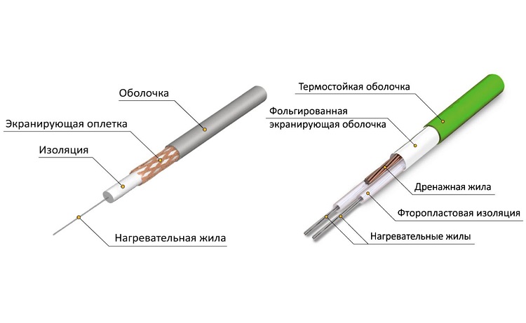 Les câbles chauffants ont une structure différente, mais pour le drain, il doit être dans une gaine étanche